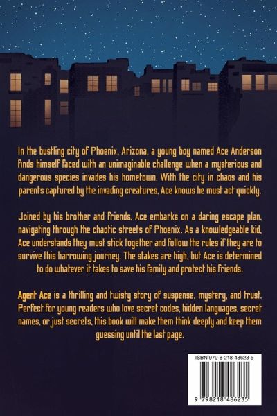 What if your family wasn't what it seemed? Agent Ace by Hayuu Seeroo is an exhilarating blend of science fiction, fantasy, and thriller, perfectly suited for middle-grade and young-adult readers. In this gripping story, siblings Kyle and Ace Anderson are thrust into a world of danger and intrigue when they uncover the shocking truth about their mother. As they grapple with the revelation that their mother may be an Illusionism-an enigmatic and perilous being capable of tricking and harming those who trust them-their lives are turned upside down. When their home is overrun by these sinister Illusionisms, Kyle and Ace must join forces with unlikely allies, including the resourceful Elinor Smith and the ever-watchful Vera Davis. Together, they embark on a heart-pounding adventure that takes them from their familiar surroundings to a hidden sanctuary in Denver. Along the way, they face treacherous enemies, navigate a web of deception, and confront their deepest fears. Agent Ace is a spellbinding tale of courage, resilience, and the unbreakable bond between siblings. Its fast-paced plot, vivid world-building, and intriguing characters make it a must-read for fans of thrilling science fiction and fantasy. Perfect for readers ages 8+, this book promises to captivate and inspire young minds with its imaginative and action-packed narrative. Uncover the truth-secure your book now!