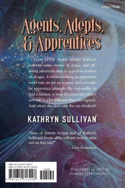 From EPPIE Award winner Kathryn Sullivan come stories of magic and off-world adventure sure to appeal to readers of all ages. Here are tales of wizards training apprentices and interstellar operatives protecting "primitive" worlds. How does one university cope with a student from very far away, and where do some wizards get their supplies? And what’s the deal with the cat whiskers? The Zumaya Thresholds edition includes new stories and old favorites, all certain to keep pages turning and imaginations stirred.