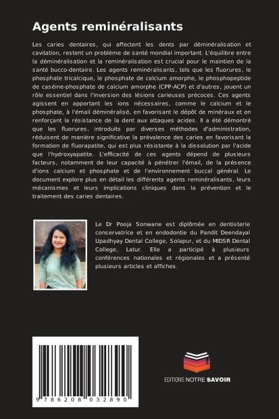 Les caries dentaires, qui affectent les dents par déminéralisation et cavitation, restent un problème de santé mondial important. L'équilibre entre la déminéralisation et la reminéralisation est crucial pour le maintien de la santé bucco-dentaire. Les agents reminéralisants, tels que les fluorures, le phosphate tricalcique, le phosphate de calcium amorphe, le phosphopeptide de caséine-phosphate de calcium amorphe (CPP-ACP) et d'autres, jouent un rôle essentiel dans l'inversion des lésions carieuses précoces. Ces agents agissent en apportant les ions nécessaires, comme le calcium et le phosphate, à l'émail déminéralisé, en favorisant le dépôt de minéraux et en renforçant la résistance de la dent aux attaques acides. Il a été démontré que les fluorures, introduits par diverses méthodes d'administration, réduisent de manière significative la prévalence des caries en favorisant la formation de fluorapatite, qui est plus résistante à la dissolution par l'acide que l'hydroxyapatite. L'efficacité de ces agents dépend de plusieurs facteurs, notamment de leur capacité à pénétrer l'émail, de la présence d'ions calcium et phosphate et de l'environnement buccal général. Le document explore plus en détail les différents agents reminéralisants, leurs mécanismes et leurs implications cliniques dans la prévention et le traitement des caries dentaires.