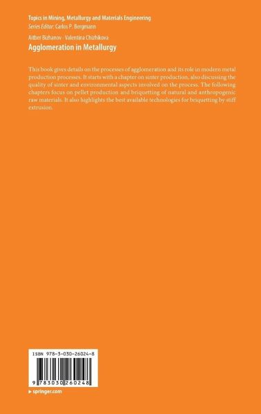 This book gives details on the processes of agglomeration and its role in modern metal production processes. It starts with a chapter on sinter production, also discussing the quality of sinter and environmental aspects involved on the process. The following chapters focus on pellet production and briquetting of natural and anthropogenic raw materials. It also highlights the best available technologies for briquetting by stiff extrusion.