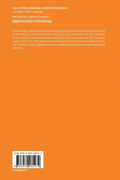 This book gives details on the processes of agglomeration and its role in modern metal production processes. It starts with a chapter on sinter production, also discussing the quality of sinter and environmental aspects involved on the process. The following chapters focus on pellet production and briquetting of natural and anthropogenic raw materials. It also highlights the best available technologies for briquetting by stiff extrusion.