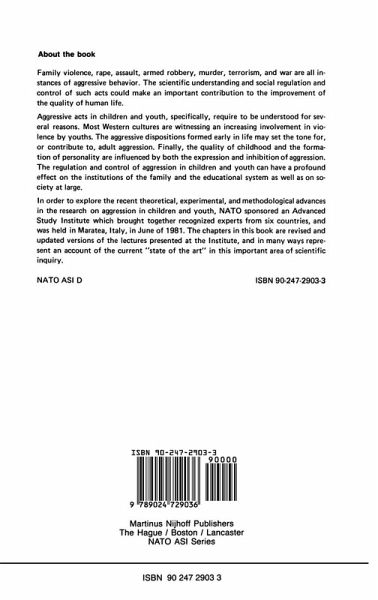 Human aggression is a fascinating research topic, but it is of much more than academic importance. To a large extent, the quality of life and perhaps even world survival depend on an adequate understanding of human aggression. Family vi o lence (child battering and spouse abuse), rape, assault, armed robbery, murder, terrorism, and war are all instances of various types of aggression. The ability to regulate and control such acts could have a crucial contribution to the improvement of the quality of life. Aggressive acts in children and youth need to be under stood for three major reasons. First, most Western cultures are witnessing an increasing involvement in violence by youths. Second, the aggressive dispositions formed early in life may set the tone for or contribute to adult aggression. Third, the quality of childhood and the formation of personal ity are influenced by both the expression and inhibition of aggression. The regulation and control of aggression in children and youth can have a profound effect on the institu tions of the family and the educational system as well as on society at large. Most societies are dedicated to maintain ing harmony and to providing nonviolent solutions to human problems and social conflict. A substantial amount of knowledge has accumulated about aggression and its regulation from empirical research, theory, and clinical sources. Because of the social importance of aggression, the study of human aggression in children and youth has become a popular area for scientific research.