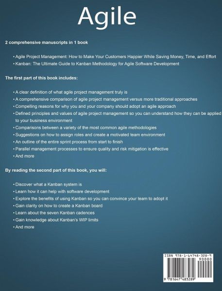 If you want to save time, money and effort while simultaneously increasing your team’s value and getting more satisfied customers, then keep reading... 2 comprehensive manuscripts in 1 book Agile Project Management: How to Make Your Customers Happier While Saving Money, Time, and Effort Kanban: The Ultimate Guide to Kanban Methodology for Agile Software Development Every day, businesses are losing huge amounts of money because they are acting in a way that dissatisfies their customers. For example, New Voice Media issued a report in 2016 which reported that $62 billion of business was lost due to poor customer service. How many businesses miss out on thousands, if not millions, of dollars in extra profit…without even realizing? Could your business be one of them? You see, most people make the same mistakes when it comes to gettings things done, as well as getting the right things done. But with this book, you can learn about Kanban methodology and Agile project management so you can optimize the workflow to serve a specific purpose, ensuring customer satisfaction. The first part of this book includes: A clear definition of what agile project management truly is A comprehensive comparison of agile project management versus more traditional approaches Compelling reasons for why you and your company should adopt an agile approach Defined principles and values of agile project management so you can understand how they can be applied to your business environment Comparisons between a variety of the most common agile methodologies Suggestions on how to assign roles and create a motivated team environment An outline of the entire sprint process from start to finish Parallel management processes to ensure quality and risk mitigation is effective And much, much more By reading the second part of this book, you will: Discover what a Kanban system is Learn how it can help with software development Explore the benefits of using Kanban so you can convince your team to adopt it Gain clarity on how to create a Kanban board Learn about the seven Kanban cadences Gain knowledge about Kanban’s WIP limits And much, much more Don’t let your competitors get to this information before you. Get this book today and improve your business!