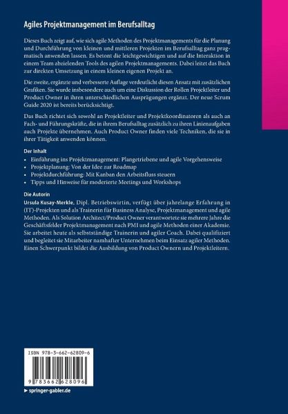 Dieses Buch zeigt auf, wie sich agile Methoden des Projektmanagements für die Planung und Durchführung von kleinen und mittleren Projekten im Berufsalltag ganz pragmatisch anwenden lassen. Es betont die leichtgewichtigen und auf die Interaktion in einem Team abzielenden Tools des agilen Projektmanagements. Dabei leitet das Buch zur direkten Umsetzung in einem kleinen eigenen Projekt an. Die zweite, erweiterte und verbesserte Auflage verdeutlicht diesen Ansatz mit zusätzlichen Grafiken. Sie wurde insbesondere auch um eine Diskussion der Rollen Projektleiter und Product Owner in ihren unterschiedlichen Ausprägungen ergänzt. Der neue Scrum Guide 2020 ist bereits berücksichtigt. Das Buch richtet sich sowohl an Projektleiter und Projektkoordinatoren als auch an Fach- und Führungskräfte, die in ihrem Berufsalltag zusätzlich zu ihren Linienaufgaben auch Projekte übernehmen. Auch Product Owner finden viele Techniken, die sie in ihrer Tätigkeit anwenden können.