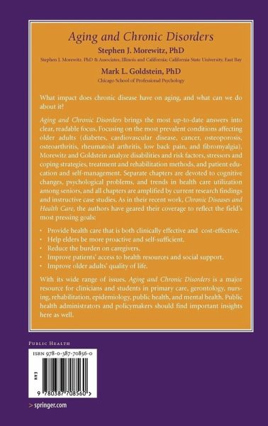 Chronic Disorders in an Aging Population: Epidemiology.- Elders and Health Care Utilization and Costs.- Chronic Disease and Quality of Life in Older Adults.- Psychological Problems in the Elderly.- Cognitive Changes in Older Adults.- Seniors with Diabetes Mellitus.- Rheumatoid Arthritis, Osteoarthritis, Osteoporosis, Fibromyalgia, and Low Back Pain in Older Adults.- Cardiovascular Disease in the Elderly.- Seniors with Cancer.