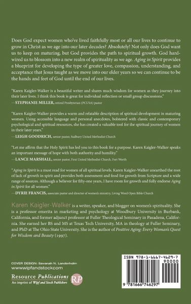 Does God expect women who've lived faithfully most or all our lives to continue to grow in Christ as we age into our later decades? Absolutely! Not only does God want us to keep on maturing, but God provides the path to spiritual growth. God hardwired us to blossom into a new realm of spirituality as we age. Aging in Spirit provides a blueprint for developing the type of greater love, compassion, understanding, and acceptance that Jesus taught as we move into our elder years so we can continue to be the hands and feet of God until the end of our lives.