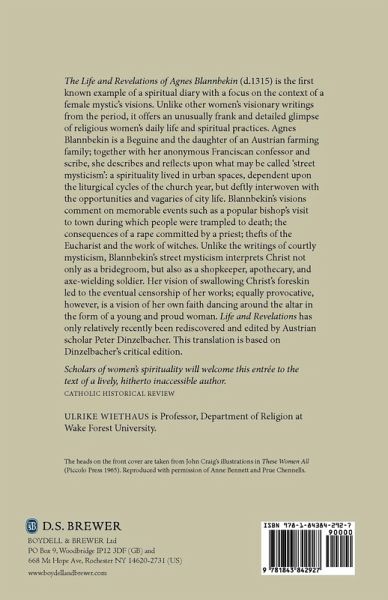 This early example of a spiritual diary incorporating the visions of a female mystic offers a glimpse of religious women's daily life and spiritual practices. Her visions comment on memorable events such as a popular bishop's visit to town during which people were trampled to death; the consequences of a rape committed by a priest; thefts of the Eucharist and the work of witches. Christ, for Blannbekin, is not only bridegroom, but also shopkeeper, apothecary, and axe-wielding soldier, and it was her vision of swallowing Christ's foreskin which led to her eventual censorship. 'Life and Revelations' has only relatively recently been rediscovered by Austrian scholar Peter Dinzelbacher, and this translation is based on his critical edition. Ulrike Wiethaus is Associate Professor, Interdisciplinary Appointments, Wake Forest University.