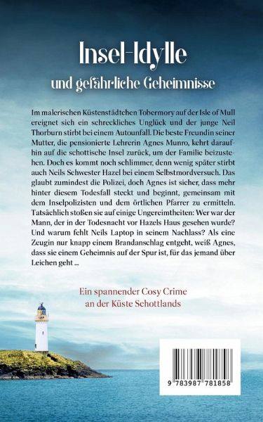 Insel-Idylle und gefährliche Geheimnisse … Ein spannender Cosy Crime an der Küste Schottlands Im malerischen Küstenstädtchen Tobermory auf der Isle of Mull ereignet sich ein schreckliches Unglück und der junge Neil Thorburn stirbt bei einem Autounfall. Die beste Freundin seiner Mutter, die pensionierte Lehrerin Agnes Munro kehrt daraufhin auf die schottische Insel zurück, um der Familie beizustehen. Doch es kommt noch schlimmer, denn wenig später stirbt auch Neils Schwester Hazel bei einem Selbstmordversuch. Das glaubt zumindest die Polizei, doch Agnes ist sicher, dass mehr hinter diesem Todesfall steckt und beginnt, gemeinsam mit dem Inselpolizisten und dem örtlichen Pfarrer zu ermitteln. Tatsächlich stoßen sie auf einige Ungereimtheiten: Wer war der Mann, der in der Todesnacht vor Hazels Haus gesehen wurde? Und warum fehlt Neils Laptop in seinem Nachlass? Als eine Zeugin nur knapp einem Brandanschlag entgeht, weiß Agnes, dass sie einem Geheimnis auf der Spur ist, für das jemand über Leichen geht … Dies ist eine überarbeitete Neuauflage des bereits erschienenen Titels Tödliche Zeilen. Erste Leser:innenstimmen „Ein schottischer Wohlfühlkrimi für gemütliche Kaminabende." „Atmosphärisch und augenzwinkernd geschriebener Cosy Crime." „Was fast wie ein Thriller beginnt, entwickelt sich zum faszinierenden Portrait einer Kleinstadt." „Eine spannende Lektüre, die gekonnt klassische Krimielemente mit spannenden Charakteren mischt." „Agnes Munro ermittelt so sympathisch und klug wie Miss Marple!"