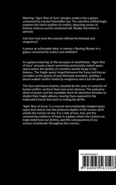 Can love truly heal the wounds inflicted by betrayal and vengeance? Is peace an achievable ideal, or merely a fleeting illusion in a galaxy consumed by avarice and ambition? In a galaxy teetering on the precipice of annihilation, "Agni: Rise of Sura" unravels a heart-wrenching and brutally violent space opera where the destiny of countless worlds hangs in the balance. The fragile peace forged between the Suras and Asuras crumbles as the ghosts of past betrayals reawaken, igniting a blood-soaked conflict fueled by vengeance and a lust for power. Kanishka, the wielder of the devastating Agni Astra, embarks on a perilous odyssey of self-discovery, wrestling with the immense weight of her actions and the sacrifices she has endured. Her pursuit of inner peace and redemption leads her through a treacherous maze of violence and heartache, where the boundaries morality dessolve. Indrajeet, torn between his unwavering loyalty to the Asuras and his trauma, grapples with a moral crisis that could alter the course of the war. His choices will have profound consequences, not only for himself but for the entire galaxy. Meanwhile, the Sura and Asura empires, haunted by the scars of centuries of brutal conflict, confront their own inner demons. The seductive allure of power and the insatiable thirst for dominion threaten to shatter their fragile alliance, leaving them exposed to the malevolent forces that seek to extinguish all life.