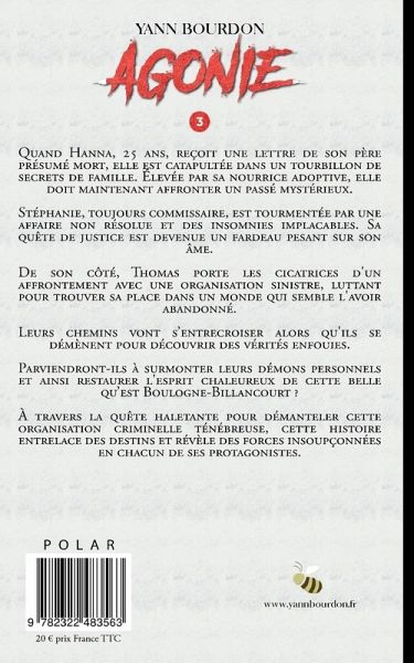 Quand Hanna, 25 ans, reçoit une lettre de son père présumé mort, elle est catapultée dans un tourbillon de secrets de famille. Élevée par sa nourrice adoptive, elle doit maintenant affronter un passé mystérieux.Stéphanie, toujours commissaire, est tourmentée par une affaire non résolue et des insomnies implacables. Sa quête de justice est devenue un fardeau pesant sur son âme.De son côté, Thomas porte les cicatrices d'un affrontement avec une organisation sinistre, luttant pour trouver sa place dans un monde qui semble l'avoir abandonné.Leurs chemins vont s'entrecroiser alors qu'ils se démènent pour découvrir des vérités enfouies.Parviendront-ils à surmonter leurs démons personnels et ainsi restaurer l'esprit chaleureux de cette belle qu'est Boulogne-Billancourt ?À travers la quête haletante pour démanteler cette organisation criminelle ténébreuse, cette histoire entrelace des destins et révèle des forces insoupçonnées en chacun de ses protagonistes.
