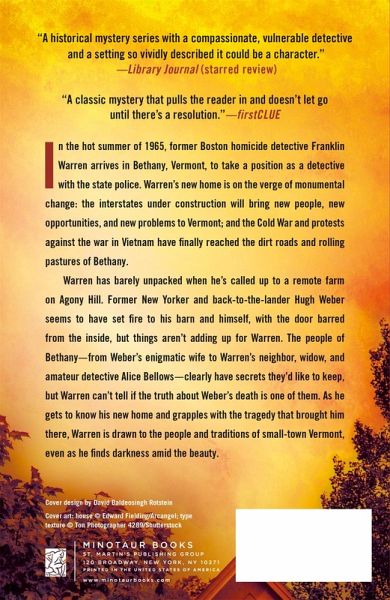 "A historical mystery series with a compassionate, vulnerable detective and a setting so vividly described it could be a character." -Library Journal (starred review) In the hot summer of 1965, Bostonian Franklin Warren arrives in Bethany, Vermont, to take a position as a detective with the state police. Warren's new home is on the verge of monumental change; the interstates under construction will bring new people, new opportunities, and new problems to Vermont, and the Cold War and protests against the war in Vietnam have finally reached the dirt roads and rolling pastures of Bethany. Warren has barely unpacked when he's called up to a remote farm on Agony Hill. Former New Yorker and Back-to-the-Lander Hugh Weber seems to have set fire to his barn and himself, with the door barred from the inside, but things aren't adding up for Warren. The people of Bethany-from Weber's enigmatic wife to Warren's neighbor, widow and amateur detective Alice Bellows - clearly have secrets they'd like to keep, but Warren can't tell if the truth about Weber's death is one of them. As he gets to know his new home and grapples with the tragedy that brought him there, Warren is drawn to the people and traditions of small town Vermont, even as he finds darkness amidst the beauty. Set in rural Vermont in the volatile 1960s, Agony Hill is the first novel in a new historical series full of vivid New England atmosphere and the deeply drawn characters that are Sarah Stewart Taylor's trademark.