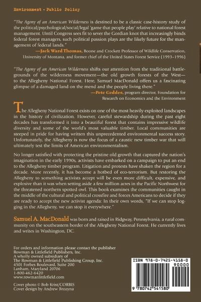 The Agony of an American Wilderness is destined to be a classic case history study of the political/psychological/social/legal 'game that people play' relative to the national forest management. Until Congress sees fit to sever the Gordian Knot that increasingly binds federal forest managers, such political passion plays are the likely future for the management of federal lands. -- Jack Ward Thomas, Boone and Crockett Professor of Wildlife Conservation, University of Montana; Chief Emeritus, U.S. Forest Service Journalist MacDonald (who was born and raised in the region) examines the communities that are caught in the crossfire of this debate and argues that the "zero-cut" philosophy of forest resource management is too extreme. Scitech Book News He has done us all a service in laying out, in a down-to-earth style, the history and nature of the forest, and the pros and cons of the opposing camps' arguments. The Philadelphia Inquirer The Agony of an American Wilderness shifts our attention from the traditional battlegrounds of the wilderness movement, the old growth forests of the West, to the Allegheny National Forest. Here, Sam MacDonald offers us a fascinating glimpse of a damaged land on the mend and the people living in it. -- Pete Geddes, program director, the Foundation for Research on Economics and the Environment Interviews, a history of regional logging and environmentalism, and a look at locals versus tourists make this a must-read for those who believe heated environmental controversies only exist on the west coast. Western Pennsylvania History