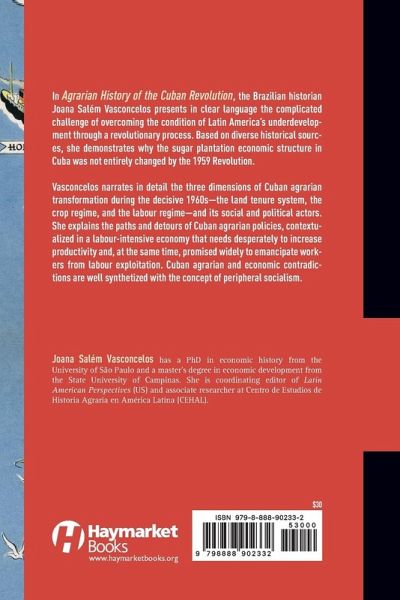 In Agrarian History of the Cuban Revolution, the Brazilian historian Joana Salém Vasconcelos presents in clear language the complicated challenge of overcoming the condition of Latin America's underdevelopment through a revolutionary process. Based on diverse historical sources, she demonstrates why the sugar plantation economic structure in Cuba was not entirely changed by the 1959 Revolution. Vasconcelos narrates in detail the three dimensions of Cuban agrarian transformation during the decisive 1960s - the land tenure system, the crop regime, and the labour regime - and its social and political actors. She explains the paths and detours of Cuban agrarian policies, contextualized in a labour-intensive economy that needs desperately to increase productivity and, at the same time, promised widely to emancipate workers from labour exploitation. Cuban agrarian and economic contradictions are well-synthetized with the concept of Peripheral Socialism.
