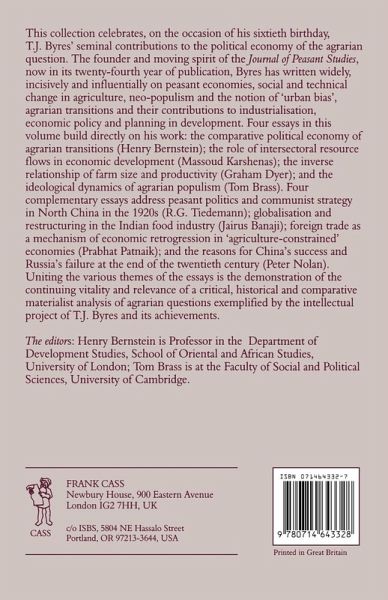 This collection celebrates T.J. Byres' seminal contributions to the political economy of the agrarian question. Uniting the various themes is the demonstration of the continuing relevance of a critical, historical and comparative materialist analysis of agrarian question.