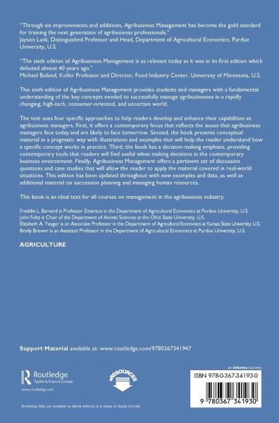 This sixth edition of Agribusiness Management provides students and managers with a fundamental understanding of the key concepts needed to successfully manage agribusinesses in a rapidly changing, high-tech, consumer-oriented, and uncertain world.