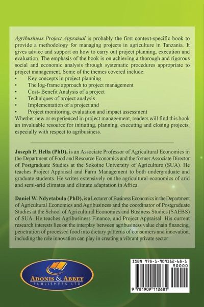Agribusiness Project Appraisal is probably the first context-specific book to provide a methodology for managing projects in agriculture in Tanzania. It gives advice and support on how to carry out project planning, execution and evaluation. The emphasis of the book is on achieving a thorough and rigorous social and economic analysis through systematic procedures appropriate to project management. Some of the themes covered include: · Key concepts in project planning. · The log-frame approach to project management · Cost- Benefit Analysis of a project · Techniques of project analysis · Implementation of a project and · Project monitoring, evaluation and impact assessment Whether new or experienced in project management, readers will find this book an invaluable resource for initiating, planning, executing and closing projects, especially with respect to agribusiness.