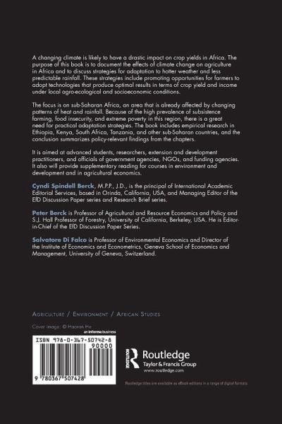 A changing climate is likely to have a drastic impact on crop yields in Africa. The purpose of this book is to document the effects of climate change on agriculture in Africa and to discuss strategies for adaptation to hotter weather and less predictable rainfall. These strategies include promoting opportunities for farmers to adopt technologies that produce optimal results in terms of crop yield and income under local agro-ecological and socioeconomic conditions. The focus is on sub-Saharan Africa, an area that is already affected by changing patterns of heat and rainfall. Because of the high prevalence of subsistence farming, food insecurity, and extreme poverty in this region, there is a great need for practical adaptation strategies. The book includes empirical research in Ethiopia, Kenya, South Africa, Tanzania, and other Sub-Saharan countries, and the conclusion summarizes policy-relevant findings from the chapters. It is aimed at advanced students, researchers, extension and development practitioners, and officials of government agencies, NGOs, and funding agencies. It also will provide supplementary reading for courses in environment and development and in agricultural economics.