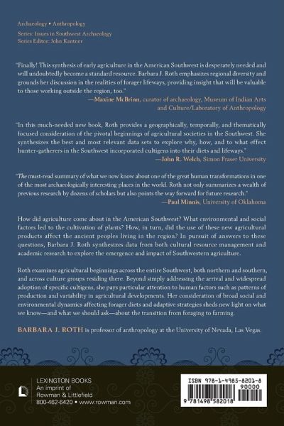 How did agriculture come about in the American Southwest? What environmental and social factors led to the cultivation of plants? How, in turn, did the use of these new agricultural products affect the ancient peoples living in the region? In pursuit of answers to these questions, Barbara Roth synthesizes data from both CRM and academic research to explore the emergence and impact of Southwestern agriculture. Roth examines agricultural beginnings across the entire Southwest, both northern and southern, and across culture groups residing there. Beyond simply addressing the arrival and widespread adoption of specific cultigens, she pays particular attention to human factors such as patterns of production and variability in agricultural developments. Her consideration of broad social and environmental dynamics affecting forager diets and adaptive strategies sheds new light on what we know-and what we should ask-about the transition from foraging to farming.