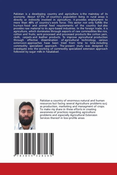 Pakistan is a developing country and agriculture is the mainstay of its economy. About 67.5% of country's population living in rural areas is directly or indirectly involved in agriculture. It provides employment to more than 48% of country's work force. This sector not only fulfills the human food and animal feed requirements of the country but also provides raw material to its agro-based industries. In the foreign trade, it is agriculture, which dominates through exports of raw commodities like rice, cotton and fruits; semi processed and processed products like cotton yarn, cloth, carpets and leather products. To improve agricultural production through effective dissemination of agricultural technology, various extension approaches have been tried from time to time including commodity specialized approach. The present study was designed to investigate into the working of commodity specialized extension approach followed by sugar mills in Faisalabad.