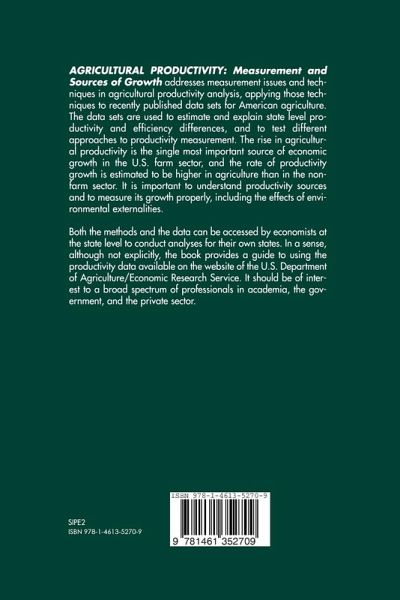Agricultural Productivity: Measurement and Sources of Growth addresses measurement issues and techniques in agricultural productivity analysis, applying those techniques to recently published data sets for American agriculture. The data sets are used to estimate and explain state level productivity and efficiency differences, and to test different approaches to productivity measurement. The rise in agricultural productivity is the single most important source of economic growth in the U.S. farm sector, and the rate of productivity growth is estimated to be higher in agriculture than in the non-farm sector. It is important to understand productivity sources and to measure its growth properly, including the effects of environmental externalities.