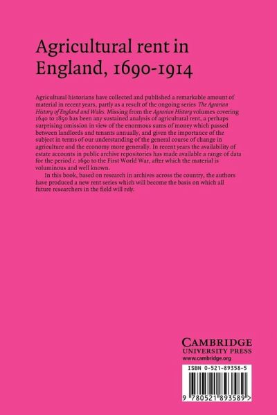 Agricultural historians have collected and published a remarkable amount of material in recent years, partly as a result of the ongoing series 'The Agrarian History of England and Wales'. Missing from the Agrarian History volumes covering 1640-1850 has been any sustained analysis of agricultural rent, a perhaps surprising omission in view of the enormous sums of money which passed between landlords and tenants annually, and given the importance of the subject in terms of our understanding of the general course of change in agriculture and the economy more generally. In recent years the availability of estate accounts in public archive repositories has made available a range of data for the period c.1690 to the First World War, after which the material is voluminous and well known. In this book, based on research in archives across the country, the authors have produced a new rent index which will become the basis on which all future researchers in the field will rely.