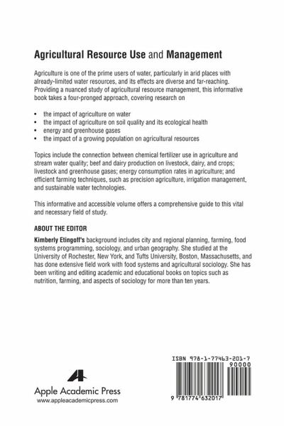 This title includes a number of Open Access chapters. Agriculture is one of the prime users of water, particularly in arid places with already-limited water resources, and its effects are diverse and far reaching. Providing a nuanced study of agricultural resource management, this informative book takes a four-pronged approach, covering research on: ¿ The impact of agriculture on water ¿ The impact of agriculture on soil quality and its ecological health ¿ Energy and greenhouse gases ¿ The impact of a growing population on agricultural resources Topics include the connection between chemical fertilizer use in agriculture and stream water quality; beef and dairy production on livestock, dairy, and crops; livestock and greenhouse gases; energy consumption rates in agriculture; efficient farming techniques, such as precision agriculture, irrigation management, and sustainable water technologies; and more. This informative and accessible volume offers a comprehensive guide to this vital and necessary field of study.
