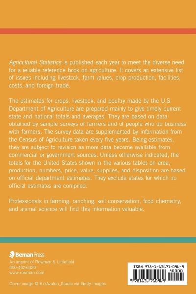 Agricultural Statistics is published each year to meet the diverse need for a reliable reference book on agricultural production. It covers an extensive list of issues related to agriculture including livestock, farm values, crop production, and foreign trade.