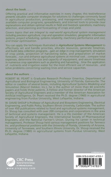 This reference offers practical and informative exercises in nearly every chapter, and presents valuable computer strategies for solutions to challenges commonly faced in agricultural production, processing, and management. The book utilizes readily available computer programs, spreadsheets, and Internet tools to provide clear explanations and obtain optimal results in field and livestock operations, machinery selection, and planning and forecasting of crops and yield. It covers topics that are integral to real-world agricultural system management, including precision agriculture, crop and operation simulation, systems reliability, machinery performance and cost, and linear optimization.