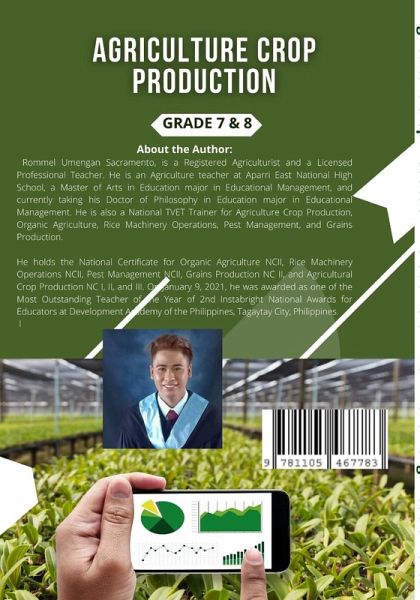 Agriculture Crop Production is designed for Grade 7 and 8. It has four chapters. Chapter 1 discusses farm tools and equipment and their maintenance. Chapter 2 discusses farm estimation and basic calculation. Chapter 3 discusses Interpreting plans and drawings, and Chapter 4 discusses safety measures in farm operations.