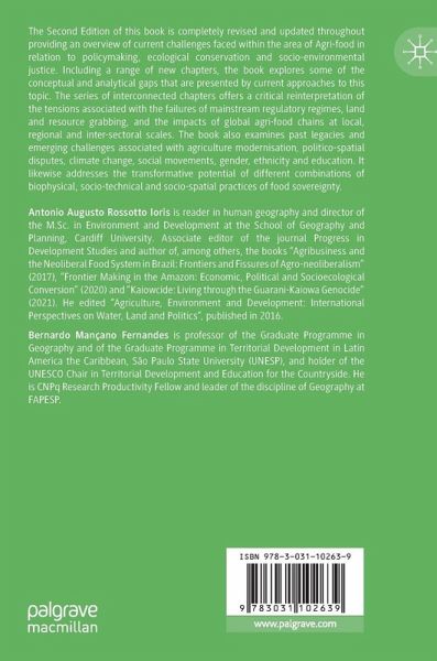 1. Agriculture, Environment and Development: International Perspectives and a Critical Agenda of Investigation.- 2. Prolegomenon: Money and Territory.- 3. Disruptive Governance in the UK Food System and the Case of Wales.- 4. Back to the Past: Authoritarian Populism, Disruptive Governance and Policy Dismantling in Rural Brazil.- 5. Contested Landscapes: Territorial Conflicts and the Production of Different Ruralities in Brazil.- 6. Land Inequality in Brazil: Conflicts and Violence in the Countryside.- 7. The Agrarian Question and the Rural Development Paths in the Periphery of Argentina: Past and Present in the Territorialisation of Peasantry in Santiago del Estero.- 8. The Empty Food Bowl: Discourse Disconnection of Australian Agriculture.- 9. Say Agribusiness but Mean Genocide: Grabbing the Guarani-Kaiowa World.- 10. Land and Food Access in the context of Climate Change: Implications to Rural Development in Mozambique.- 11. Accumulation by Land Rent and Territorial Disputes in a Brazilian Agricultural Frontier.- 12. Dispossession and Agricultural Commodities: The Case of Oil Palm Farming in the Brazilian Amazon.- 13. Three Pillars of the Global Governance of Coffee Production.- 14. (De)institutionalising Agroecology: A Historical-Relational-Interactive Perspective on the Evolution of Brazil's Agri-Environmental State.- 15. Decolonial and Feminist Approaches to Critical Food Systems Education.- 16. Territorial Resistance and Peasant Food Systems in Brazil.- 17. The Difficult but not Impossible Defeating of Right-wing Populism and the Exploration of a Socialist Future.