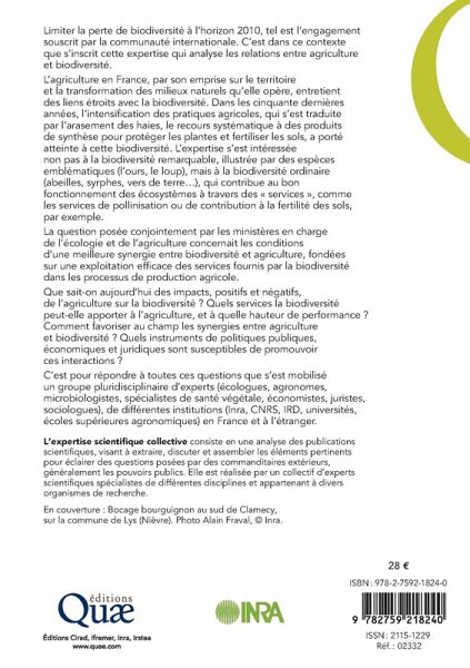 Limiter la perte de biodiversité à l'horizon 2010, tel est l'engagement souscrit par la communauté internationale. C'est dans ce contexte que s'inscrit cette expertise qui analyse les relations entre agriculture et biodiversité. L'agriculture en France, par son emprise sur le territoire et la transformation des milieux naturels qu'elle opère, entretient des liens étroits avec la biodiversité. Dans les cinquante dernières années, l'intensification des pratiques agricoles, qui s'est traduite par l'arasement des haies, le recours systématique à des produits de synthèse pour protéger les plantes et fertiliser les sols, a porté atteinte à cette biodiversité. L'expertise s'est intéressée non pas à la biodiversité remarquable, illustrée par des espèces emblématiques (l'ours, le loup), mais à la biodiversité ordinaire (abeilles, syrphes, vers de terre...), qui contribue au bon fonctionnement des écosystèmes à travers des services, comme les services de pollinisation ou de contribution à la fertilité des sols, par exemple. La question posée conjointement par les ministères en charge de l'écologie et de l'agriculture concernait les conditions d'une meilleure synergie entre biodiversité et agriculture, fondées sur une exploitation efficace des services fournis par la biodiversité dans les processus de production agricole. Que sait-on aujourd'hui des impacts, positifs et négatifs, de l'agriculture sur la biodiversité ? Quels services la biodiversité peut-elle apporter à l'agriculture, et à quelle hauteur de performance ? Comment favoriser au champ les synergies entre agriculture et biodiversité ? Quels instruments de politiques publiques, économiques et juridiques sont susceptibles de promouvoir ces interactions ? C'est pour répondre à toutes ces questions que s'est mobilisé un groupe pluridisciplinaire d'experts (écologues, agronomes, microbiologistes, spécialistes de santé végétale, économistes, juristes, sociologues), de différentes institutions (Inra, CNRS, IRD, unive