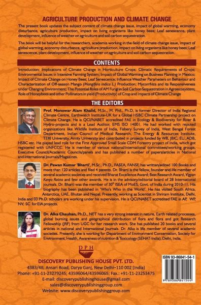 The present book updates the subject content of climate change issue, impact of global warming, economy disturbance, agriculture production, impact on living organisms like honey bees; Leaf senescence, plant development, influence of weather on agriculture and soil carbon sequestration.