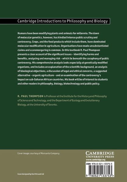Humans have been modifying plants and animals for millennia. The dawn of molecular genetics, however, has kindled intense public scrutiny and controversy. Crops, and the food products which include them, have dominated molecular modification in agriculture. Organisations have made unsubstantiated claims and scare mongering is common. In this textbook Paul Thompson presents a clear account of the significant issues - identifying harms and benefits, analysing and managing risk - which lie beneath the cacophony of public controversy. His comprehensive analysis looks especially at genetically modified organisms, and includes an explanation of the scientific background, an analysis of ideological objections, a discussion of legal and ethical concerns, a suggested alternative - organic agriculture - and an examination of the controversy's impact on sub-Saharan African countries. His book will be of interest to students and other readers in philosophy, biology, biotechnology and public policy.