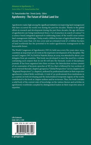 This volume contains a solid body of the current state of knowledge on the various themes and activities in agroforestry worldwide. It is organized into three sections: the Introduction section consists of the summaries of six keynote speeches at the 2nd World Congress of Agroforestry held in Nairobi, Kenya, in 2009; that is followed by two sections of peer-reviewed thematic chapters grouped as "Global Perspectives" (seven chapters) and "Regional Perspectives" (eleven chapters), authored by professional leaders in their respective agroforestry-related fields worldwide. A total of 130 professionals from institutions in 33 countries in both developing and the industrialized temperate regions of the world contributed to the book as chapter authors and/or reviewers. Thus, the book presents a comprehensive and authoritative account of the global picture of agroforestry today.