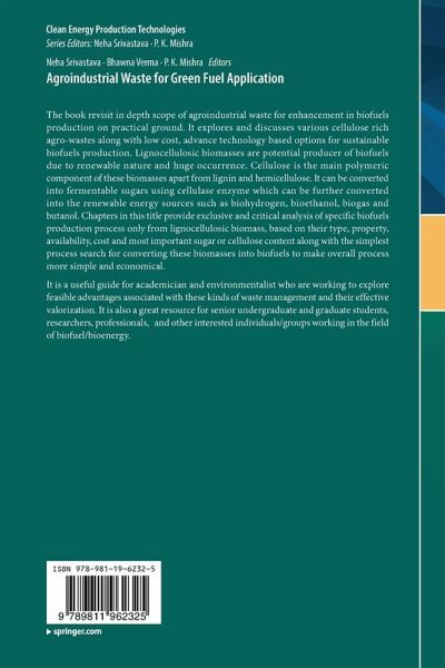 The book revisit in depth scope of agroindustrial waste for enhancement in biofuels production on practical ground. It explores and discusses various cellulose rich agro-wastes along with low cost, advance technology based options for sustainable biofuels production. Lignocellulosic biomasses are potential producer of biofuels due to renewable nature and huge occurrence. Cellulose is the main polymeric component of these biomasses apart from lignin and hemicellulose. It can be converted into fermentable sugars using cellulase enzyme which can be further converted into the renewable energy sources such as biohydrogen, bioethanol, biogas and butanol. Chapters in this title provide exclusive and critical analysis of specific biofuels production process only from lignocellulosic biomass, based on their type, property, availability, cost and most important sugar or cellulose content along with the simplest process search for converting these biomasses into biofuels to make overall process more simple and economical.It is a useful guide for academician and environmentalist who are working to explore feasible advantages associated with these kinds of waste management and their effective valorization. It is also a great resource for senior undergraduate and graduate students, researchers, professionals, and other interested individuals/groups working in the field of biofuel/bioenergy.