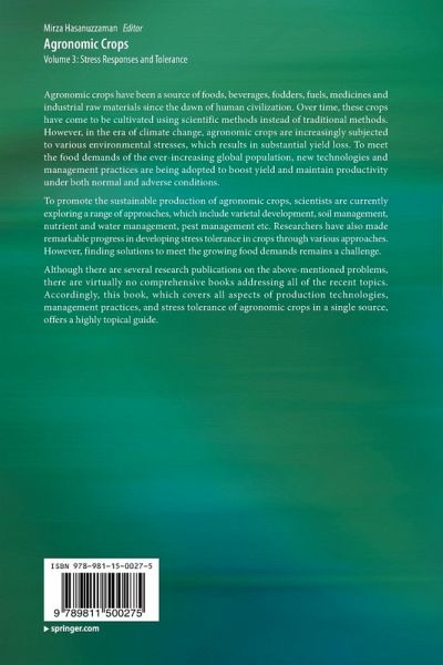 Although there are several research publications on the above-mentioned problems, there are virtually no comprehensive books addressing all of the recent topics. Accordingly, this book, which covers all aspects of production technologies, management practices, and stress tolerance of agronomic crops in a single source, offers a highly topical guide.