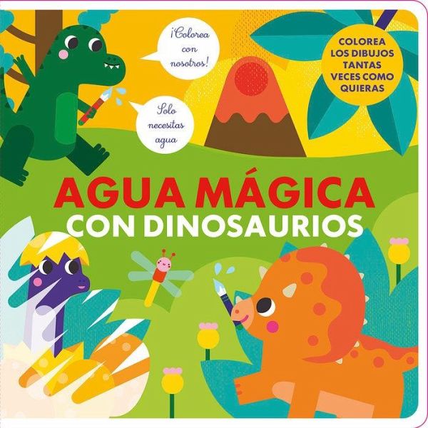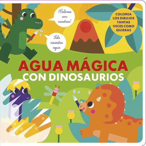 Una familia de dinosaurios llega cargada de vivos colores para ti. Hazte con un pincel (no incluido) y humedece con un poco de agua las partes blancas de cada dibujo. También puedes hacerlo directamente con el dedo. ¡Es pura magia! ¿Descubrirás los secretos que esconden? Una vez secos, los colores desaparecerán y podrás empezar de nuevo. Deja el libro abierto para que se seque más rápido y prepárate para horas y horas de diversión. ¿Quieres más? No te pierdas 'Agua mágica con la Unicornio' y 'Agua mágica con el Dragón'.