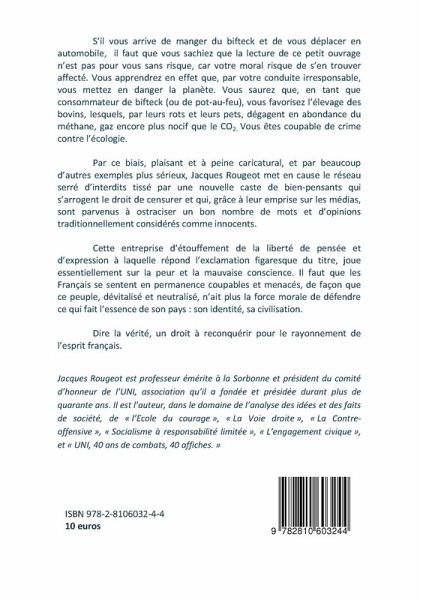 Jacques Rougeot dénonce les interdits érigés par une caste de bien-pensants qui veulent encadrer tout les débats.Il est nécessaire de retouver notre liberté de parole pour pouvoir défendre la France telle qu'on l'aime.
