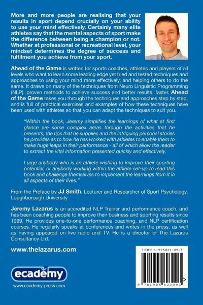 More and more people are realising that, as with all areas of life, your results in sport depend crucially on your ability to use your mind effectively. Certainly many elite sports performers say that the mental aspects of the sport make the difference between being a champion or not. The way you use your mind determines the level of success and fulfilment you gain from sport, whether at professional or recreational level. Ahead of the Game is written for sports coaches, athletes and players of all levels who want to learn some leading edge yet tried and tested techniques and approaches to using your mind more effectively, and helping others to do the same. It draws on many of the techniques from Neuro Linguistic Programming (NLP), proven methods to achieve success. Ahead of the Game takes you through the techniques and approaches step by step, and is full of practical exercises and examples of how these techniques have been used with athletes so that you can adapt the techniques to suit you.