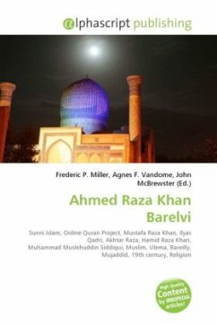 High Quality Content by WIKIPEDIA articles! Ahmed Raza Khan or Ala Hazrat, "Fazil-e-Barelvi" was a prominent Muslim Alim from Bareilly, a city in Northern India during the late 19th and early 20th centuries. Ala Hazrat has been recognized as the great Mujaddid of the 19th century. He has written many books on a vast range of topics covering religion, science and philosophy. A collection of fatwas by the title of Fatawa Ridawiyya, is his magna carta. Imam Ahmad Raza followed Imam-e-Azam Abu Hanifa in Fiqh & Gaus-e-Azam Shiekh Abdul Qadir Jilani in Spiritualism. He is referred to in India and Pakistan with titles as Aaqa-e-Ne'mat, Parwana-e-Sham'ma-e-Risalat, and et cetera.