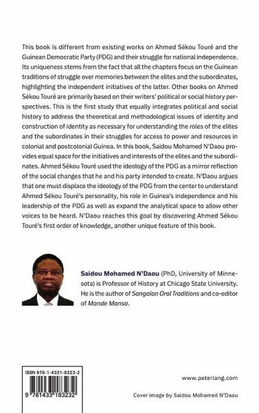 This book is different from existing works on Ahmed Sékou Touré and the Guinean Democratic Party (PDG) and their struggle for national independence. Its uniqueness stems from the fact that all the chapters focus on the Guinean traditions of struggle over memories between the elites and the subordinates, highlighting the independent initiatives of the latter. Other books on Ahmed Sékou Touré are primarily based on their writers' political or social history perspectives. This is the first study that equally integrates political and social history to address the theoretical and methodological issues of identity and construction of identity as necessary for understanding the roles of the elites and the subordinates in their struggles for access to power and resources in colonial and postcolonial Guinea. In this book, Saidou Mohamed N'Daou provides equal space for the initiatives and interests of the elites and the subordinates. Ahmed Sékou Touré used the ideology of the PDG as a mirror reflection of the social changes that he and his party intended to create. N'Daou argues that one must displace the ideology of the PDG from the center to understand Ahmed Sékou Touré's personality, his role in Guinea's independence and his leadership of the PDG as well as expand the analytical space to allow other voices to be heard. N'Daou reaches this goal by discovering Ahmed Sékou Touré's first order of knowledge, another unique feature of this book.