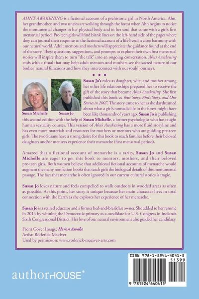 Ahn’s Awakening is a fictional account of a prehistoric girl in North America. Ahn, her grandmother, and two uncles are walking through the forest when Ahn begins to notice the monumental changes in her physical body and in her soul that come with a girl’s first menstrual period. Pre-teen girls will find blank lines on the left-hand side of the pages where they can journal their response to the fictional account of a life lived in close harmony with our natural world. Adult mentors and mothers will appreciate the guidance found at the end of the story. These questions, suggestions, and prompts to explore their own first menstrual stories will inspire them to turn "the talk" into an ongoing conversation. Ahn’s Awakening ends with a ritual that may help adult mentors and mothers see the sacred nature of our bodies’ natural functions and how they interconnect with our souls’ journeys.