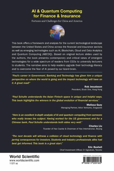 This book offers a framework and analysis for the current technological landscape between the United States and China across the financial and insurance sectors as well as emerging technologies such as AI, Blockchain, Cloud and Data Analytics and Quantum Computing (ABCDQ). Based on original lecture slides used by the authors, the book presents contemporary and critical views of emergent technologies for a wide spectrum of readers from CEOs to university lecturers to students. The narrative aims to help readers upgrade their technology literacy and to overcome the fear of AI posed by our lizard brain.