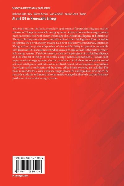 This book presents the latest research on applications of artificial intelligence and the Internet of Things in renewable energy systems. Advanced renewable energy systems must necessarily involve the latest technology like artificial intelligence and Internet of Things to develop low cost, smart and efficient solutions. Intelligence allows the system to optimize the power, thereby making it a power efficient system; whereas, Internet of Things makes the system independent of wire and flexibility in operation. As a result, intelligent and IOT paradigms are finding increasing applications in the study of renewable energy systems. This book presents advanced applications of artificial intelligence and the internet of things in renewable energy systems development. It covers such topics as solar energy systems, electric vehicles etc. In all these areas applications of artificial intelligence methods such as artificial neural networks, genetic algorithms, fuzzy logic and a combination of the above, called hybrid systems, are included. The book is intended for a wide audience ranging from the undergraduate level up to the research academic and industrial communities engaged in the study and performance prediction of renewable energy systems.