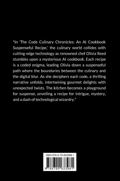 "In 'The Code Culinary Chronicles: An AI Cookbook Suspenseful Recipe,' the culinary world collides with cutting-edge technology as renowned chef Olivia Reed stumbles upon a mysterious AI cookbook. Each recipe is a coded enigma, leading Olivia down a suspenseful path where the boundaries between the culinary and the digital blur. As she deciphers each code, a thrilling narrative unfolds, intertwining gourmet delights with unexpected twists. The kitchen becomes a playground for suspense, unveiling a recipe for intrigue, mystery, and a dash of technological wizardry."