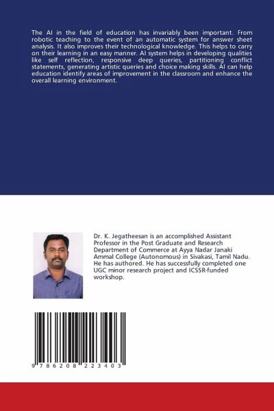 The AI in the field of education has invariably been important. From robotic teaching to the event of an automatic system for answer sheet analysis. It also improves their technological knowledge. This helps to carry on their learning in an easy manner. AI system helps in developing qualities like self reflection, responsive deep queries, partitioning conflict statements, generating artistic queries and choice making skills. AI can help education identify areas of improvement in the classroom and enhance the overall learning environment.