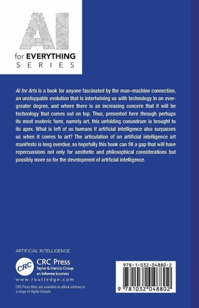 AI for Arts is a book for anyone fascinated by the man-machine connection, an unstoppable evolution that is intertwining us with technology in an ever-greater degree, and where there is an increasing concern that it will be technology that comes out on top. Thus, presented here through perhaps its most esoteric form, namely art, this unfolding conundrum is brought to its apex. What is left of us humans if artificial intelligence also surpasses us when it comes to art? The articulation of an artificial intelligence art manifesto is long overdue, so hopefully this book can fill a gap that will have repercussions not only for aesthetic and philosophical considerations but possibly more so for the development of artificial intelligence.