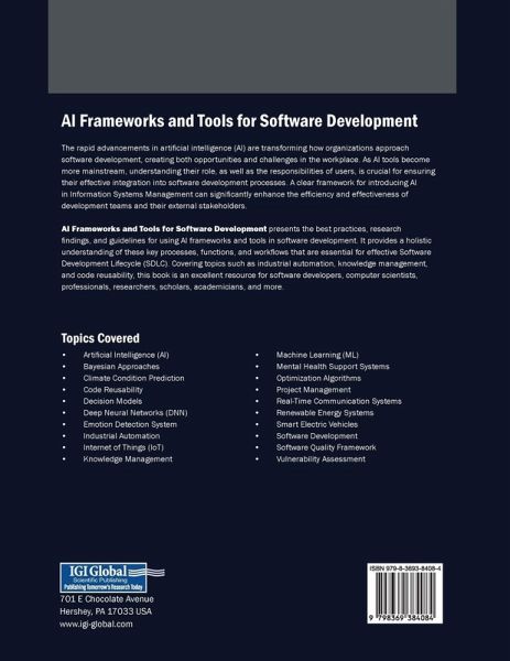 The rapid advancements in artificial intelligence (AI) are transforming how organizations approach software development, creating both opportunities and challenges in the workplace. As AI tools become more mainstream, understanding their role, as well as the responsibilities of users, is crucial for ensuring their effective integration into software development processes. A clear framework for introducing AI in Information Systems Management can significantly enhance the efficiency and effectiveness of development teams and their external stakeholders. AI Frameworks and Tools for Software Development presents the best practices, research findings, and guidelines for using AI frameworks and tools in software development. It provides a holistic understanding of these key processes, functions, and workflows that are essential for effective Software Development Lifecycle (SDLC). Covering topics such as industrial automation, knowledge management, and code reusability, this book is an excellent resource for software developers, computer scientists, professionals, researchers, scholars, academicians, and more.