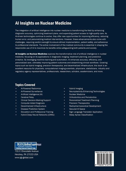 "The objective of Artificial Intelligence (AI) in nuclear medicine is to enhance the accuracy, efficiency, and effectiveness of diagnostic imaging, treatment planning, and patient care"-- Provided by publisher.