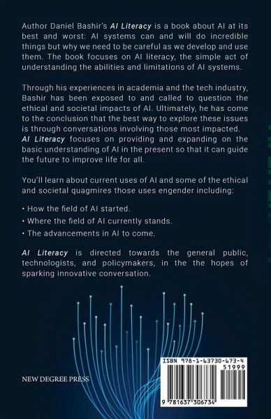 Author Daniel Bashir's AI Literacy is a book about AI at its best and worst: AI systems can and will do incredible things but why we need to be careful as we develop and use them. The book focuses on AI literacy, the simple act of understanding the abilities and limitations of AI systems. Through his experiences in academia and the tech industry, Bashir has been exposed to and called to question the ethical and societal impacts of AI. Ultimately, he has come to the conclusion that the best way to explore these issues is through conversation involving those most impacted. AI Literacy, focuses on providing and expanding on the basic understanding of AI in the present so that it can guide the future to improve life for all. You'll learn about current uses of AI and some of the ethical and societal quagmires those uses engender including:How the field of AI started. Where the field of AI currently stands. The advancements in AI to come. AI Literacy is directed towards the general public, technologists, and policymakers, in the the hopes of sparking innovative conversation.¿